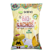 Los Nachos Bio de Ecosana son perfectos para disfrutar solos como snack o acompañados con queso fundido por encima y/o con la salsa que más te guste.Este aperitivo es elaborado a partir de ingredientes procedentes de la agricultura ecológica y, además, sin gluten, consiguiendo un producto de gran calidad que nos transportará al sabor auténtico de los nachos mexicanos.Apto para celiacos.